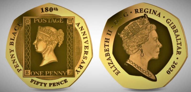 On 3rd December 2019, the Treasury of Gibraltar has released new 50 Pence coins to commemorate the world’s first-ever postage stamp “The Black Penny”. The coin produced by the British Pobjoy Mint and “The Black Penny” coin is available in 5 different variants; Cupro-nickel (8 Grams), two .925 Silver versions ( 8 grams & 16 grams), two.916 Gold coins ( 8 grams & 16 grams). All the 5 versions have the same diameter 27.3 mm and a face value of 50 pence.